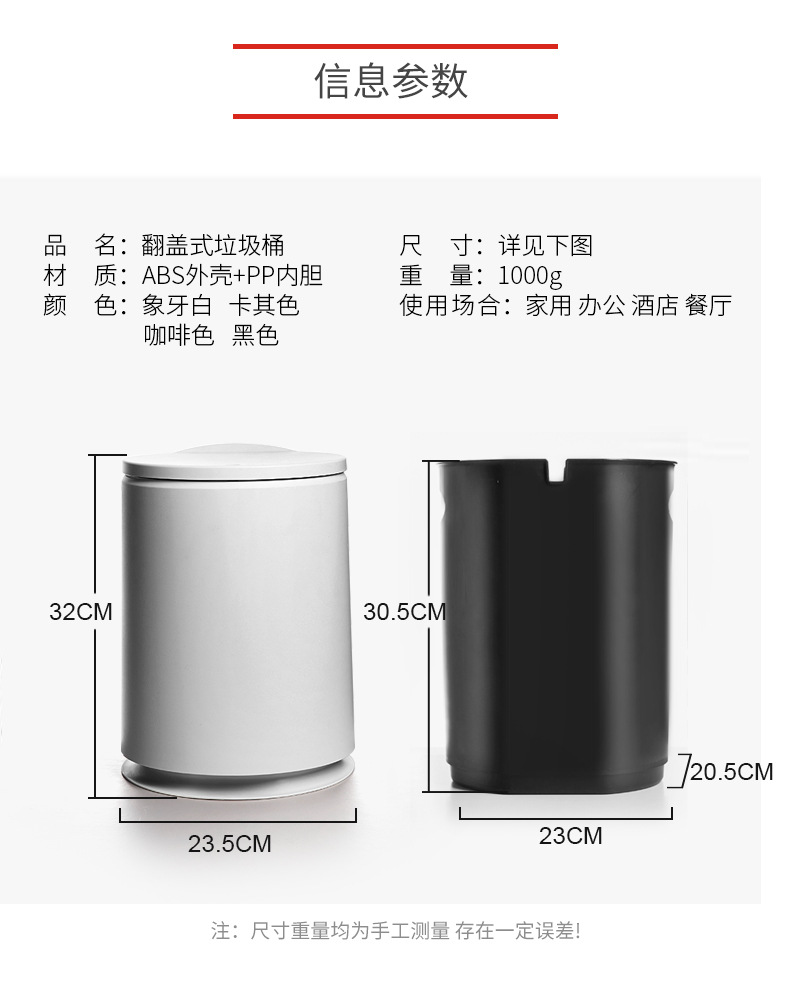 品名:大號圓形翻蓋垃圾桶(10L)